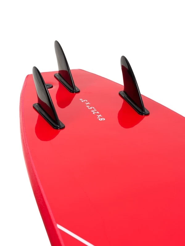 Internally our foamys feature a buoyant, durable EVA core as well as a wooden stringer which runs down the centre of the board for extra strength. The underside of the board is slick, housing a thruster (three fin) setup which is the most functional and manoeuvrable setup you will find. The fins are also flexible to avoid any injuries.