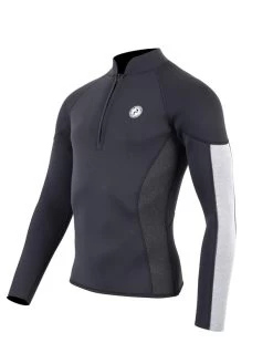 Two Bare Feet Mens Aspect Fleece Lined Zipless Thermal 2.5mm Superstretch Wetsuit Top (Black/Grey)