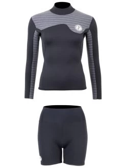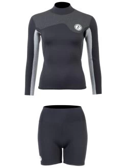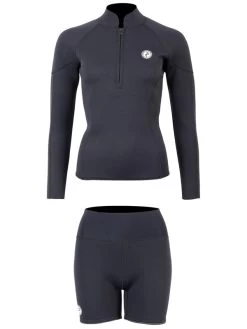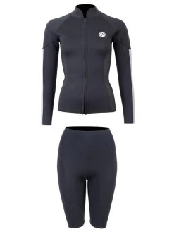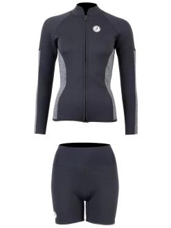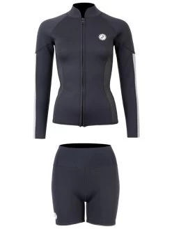 Two Bare Feet Unisex Perspective Full Zip 2.5mm Wetsuit Jacket & Hotpants Set (Black/Grey)