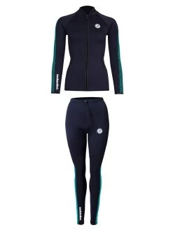 Two Bare Feet Womens Silicone Print Series 2.5mm Wetsuit Jacket & Pants Set (Black/Mint)