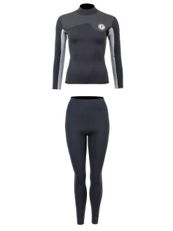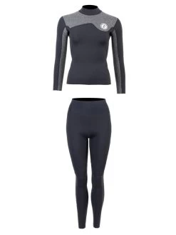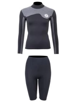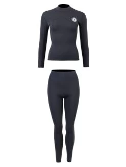 Two Bare Feet Womens Aspect Back Zip 2.5mm Wetsuit Jacket & Pants Set (Black/Grey/Grey)