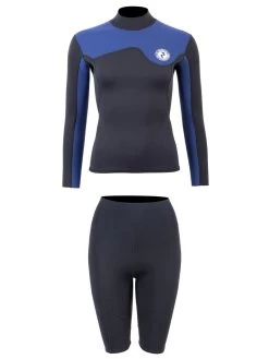 Two Bare Feet Womens Aspect Back Zip 2.5mm Wetsuit Jacket & Shorts Set (Black/Blue)