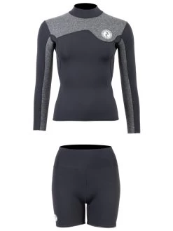 Two Bare Feet Womens Aspect Back Zip 2.5mm Wetsuit Jacket & Shorts Set (Black/Grey/Grey)
