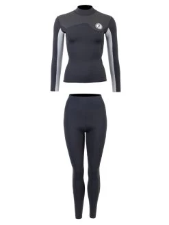 Two Bare Feet Womens Aspect Back Zip 2.5mm Wetsuit Jacket & Pants Set (Black/Grey)