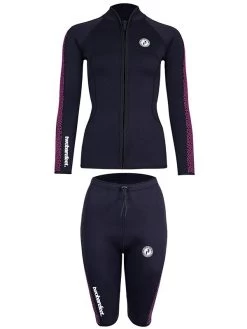 Two Bare Feet Womens Silicone Print Series 2.5mm Wetsuit Jacket & Shorts Set (Black/Raspberry)